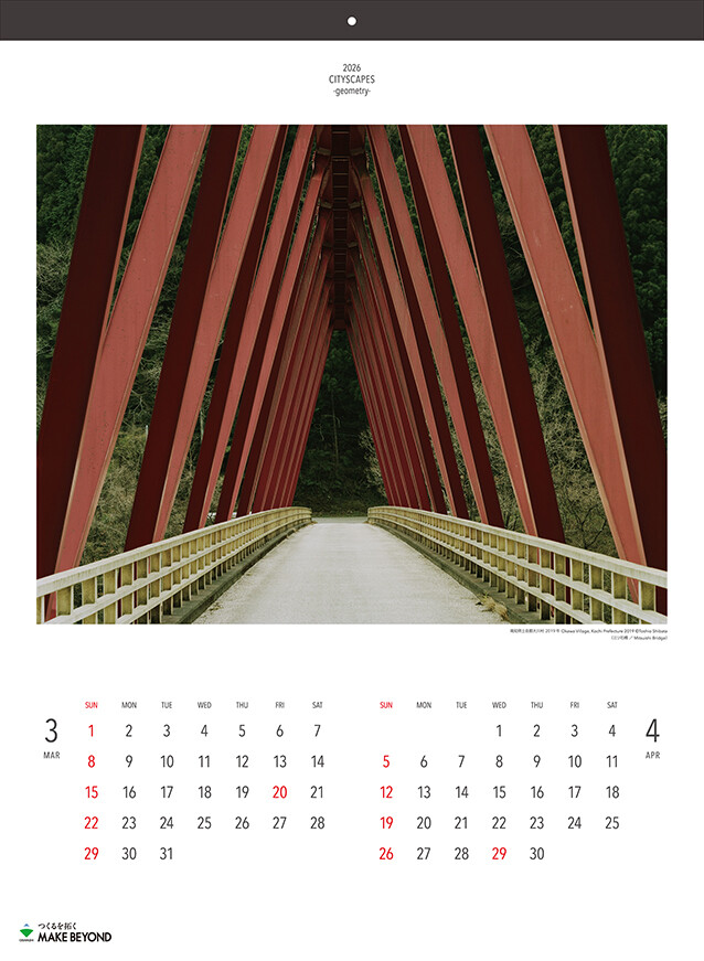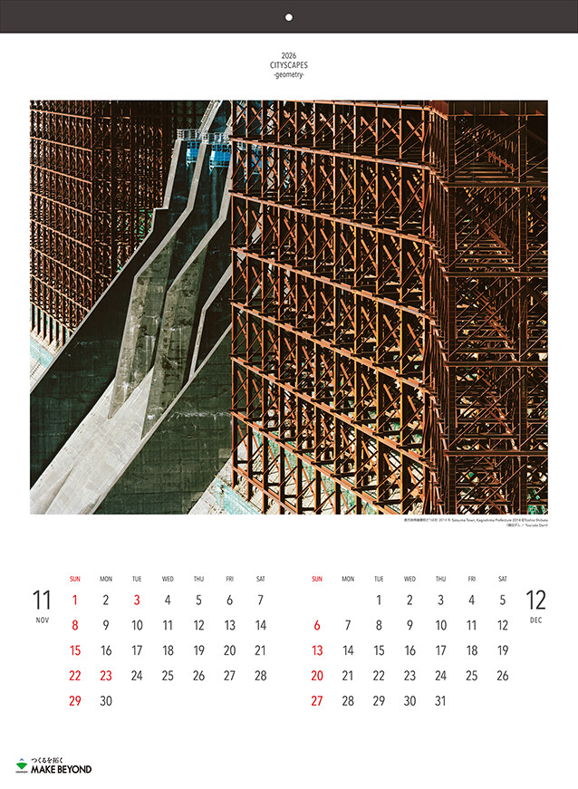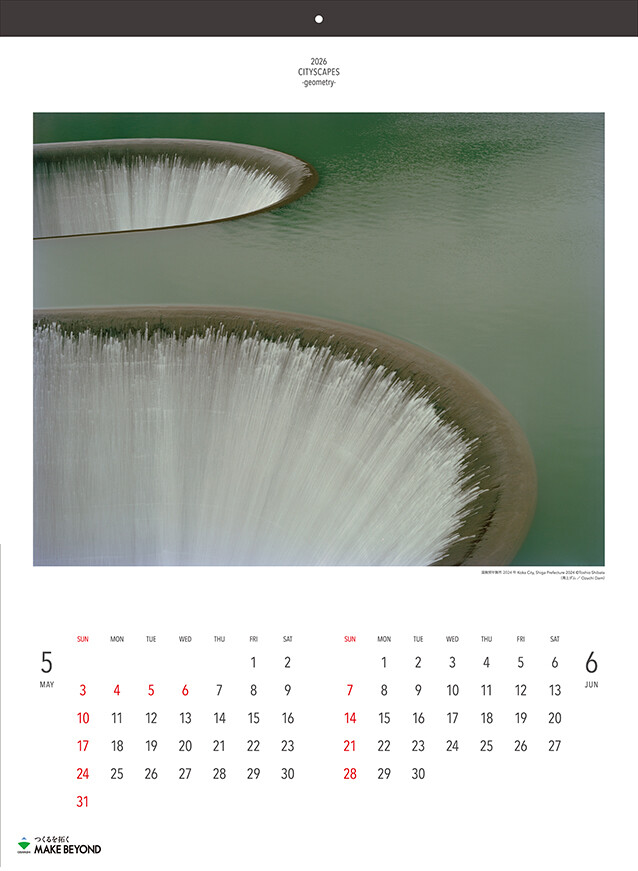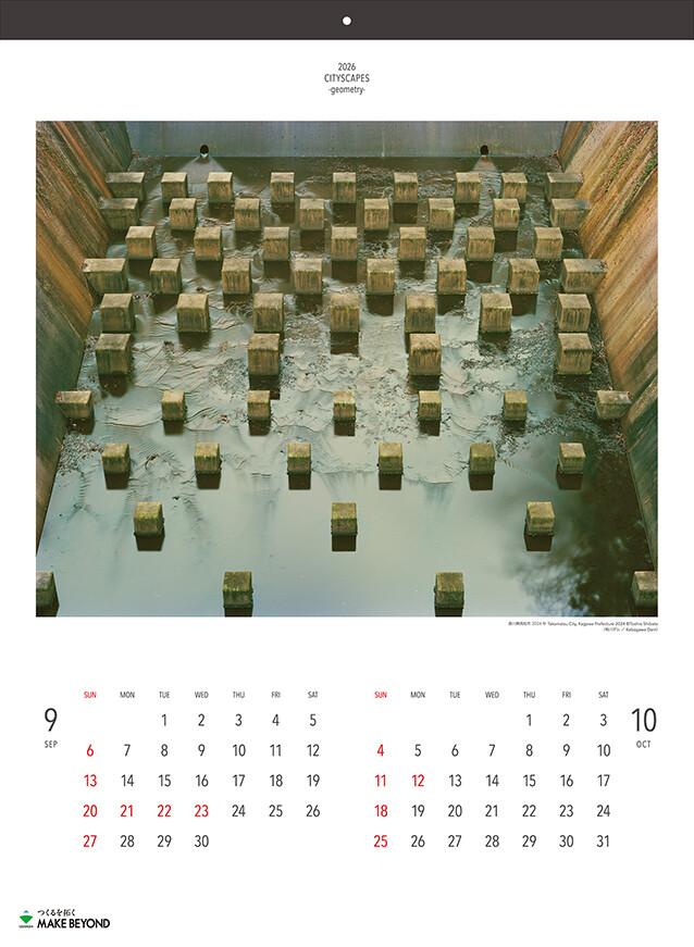 2022年版から展開している「CITYSCAPES」シリーズでは、写真家の眼と感性でとらえた都市の表情や姿を紹介しています。2026年版のテーマは「geometry(幾何学)」。写真家 柴田敏雄さんは、都市のインフラストラクチャーである土木構造物と自然が混在する現代的な風景から、研ぎ澄まされた視点によって均整のとれた画面を切りとっています。眼前に広がる景色を静物画のように撮ることで、幾何学的な造形の美しさが浮かび上がります。