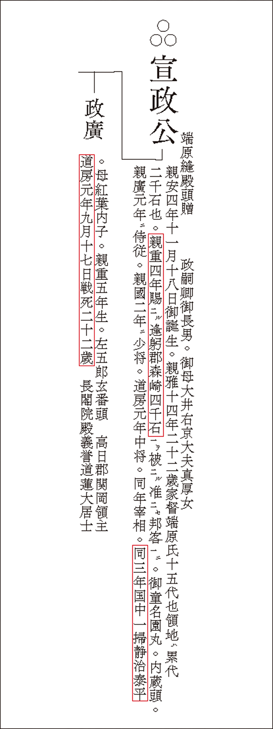 [Brief chronological record of HASHIHARA Nobumasa (made from the Genealogical Table of the HASHIHARA Family (Hashiharashi Keizu))]