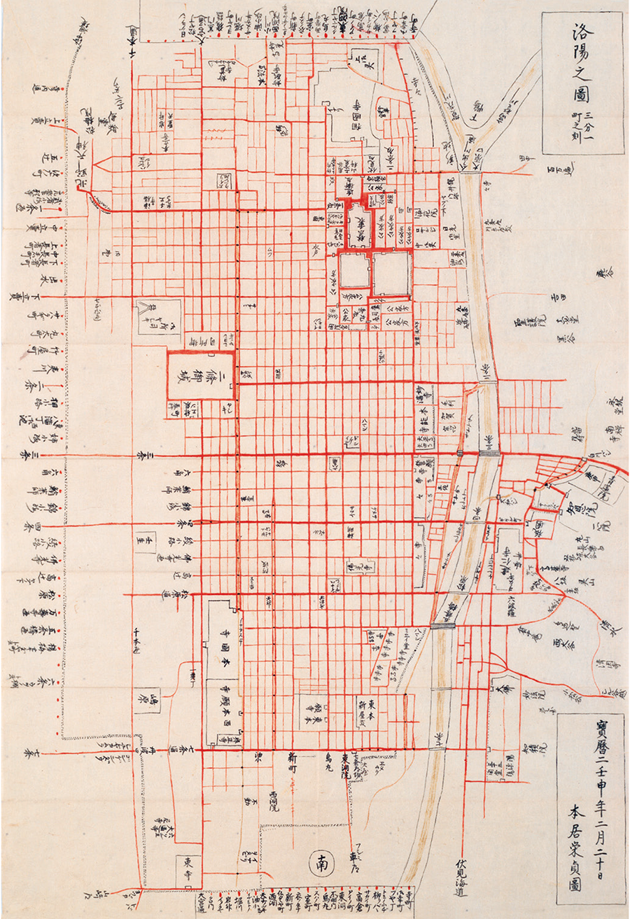 Furthermore, maps of Kyoto at the time sometimes used different vertical and horizontal scales, depicted square districts with rectangles, and even omitted the names of streets. However, the Hashihara Castle Town Map uses the same scale in both vertical and horizontal directions and was marked with the name of every street, making it even more precise in depicting the town than maps of Kyoto at the time.
