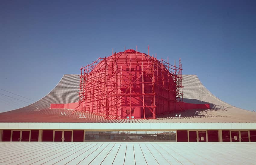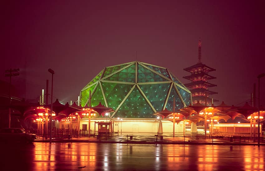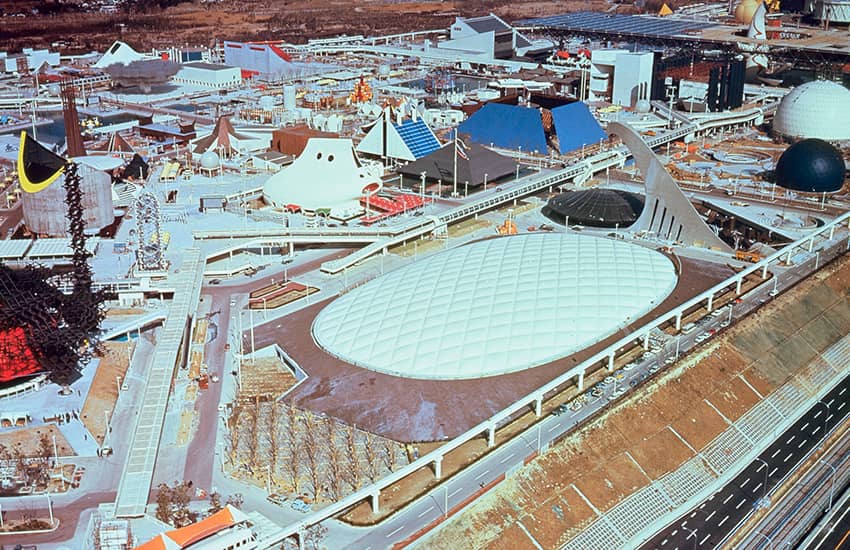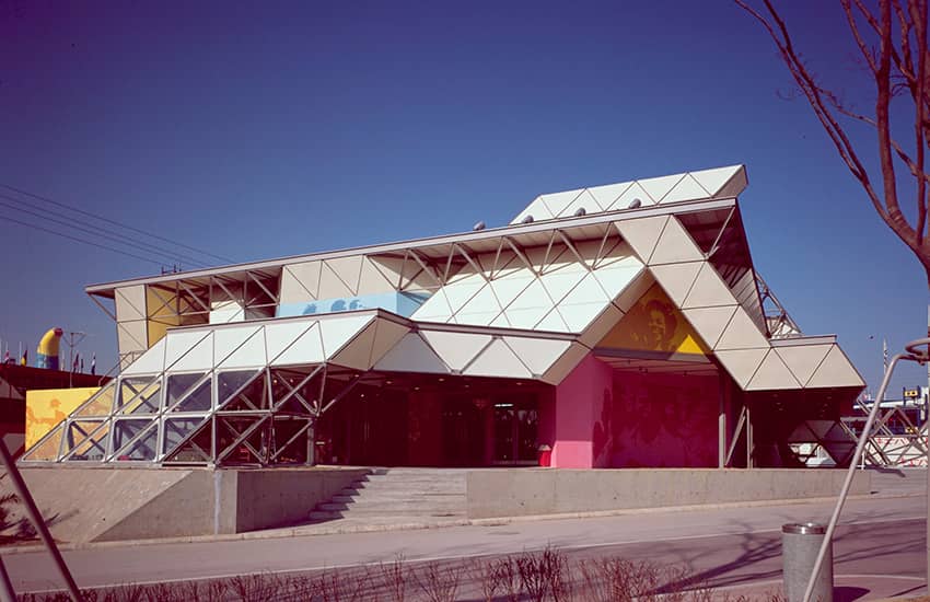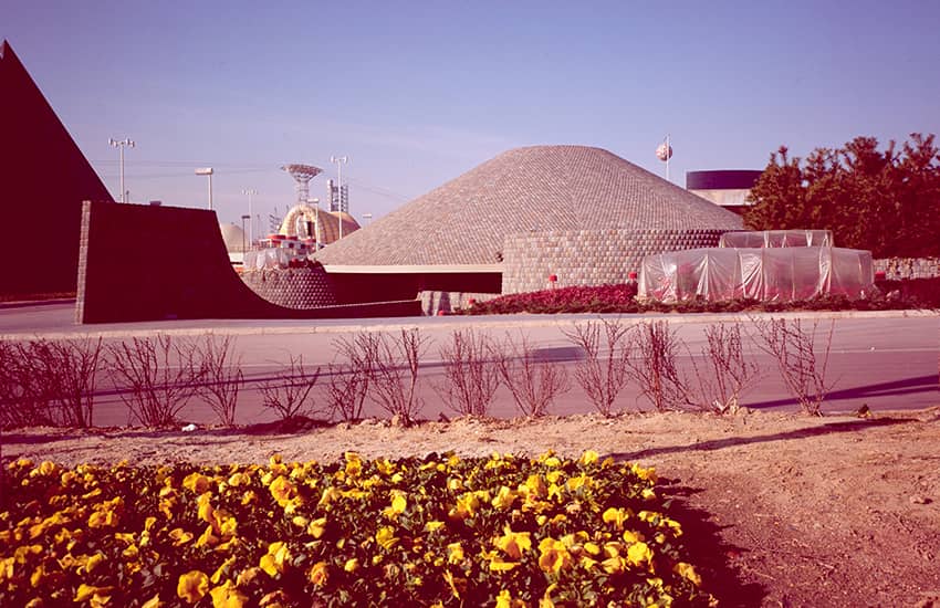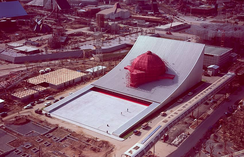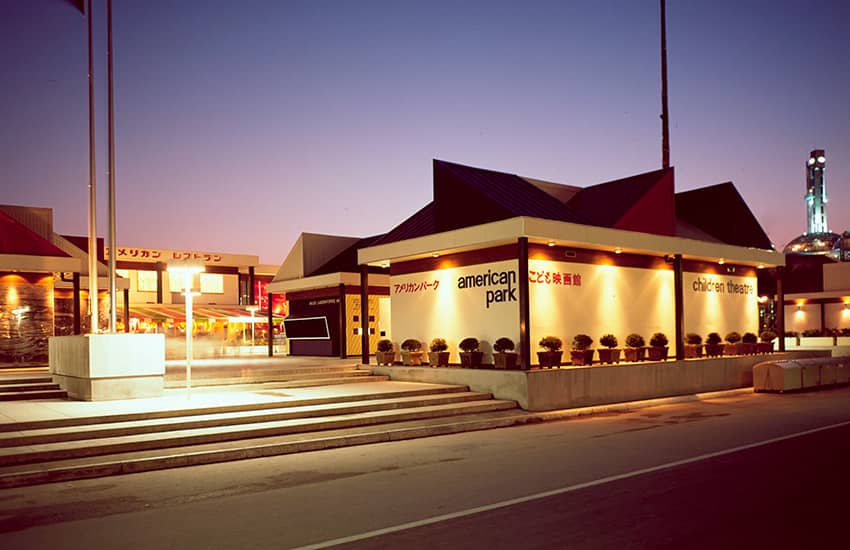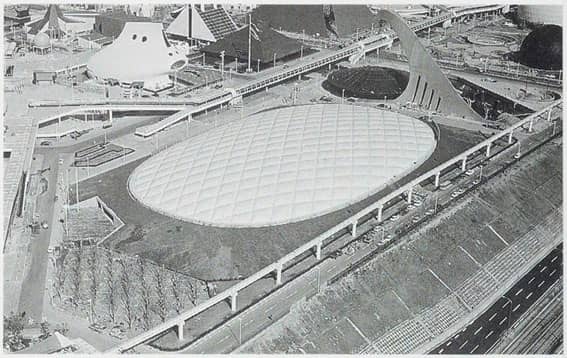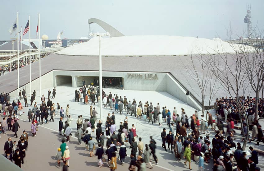 アメリカ館は、当時の同方式のエアードームとしては世界最大となった、1万㎡に及ぶ巨大な空気膜構造のドームです。設計協力と施工を担当した大林組は、外国人設計者らと共に、米国建築家にとって最大の栄誉といわれるアメリカ建築学会賞を受賞しました。