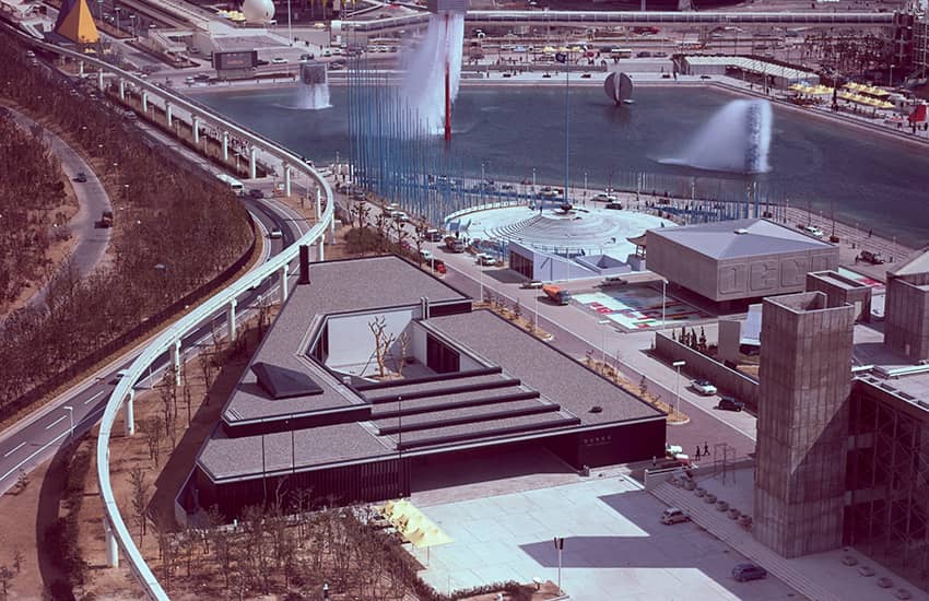 万博は、オリンピックよりも規模が大きく、開催期間も長いため、経済的な波及効果はさらに大きいと予測され、関連する各業界は一斉に受注活動を開始しました。建設業界も、もちろん例外ではありませんでした。大林組にとっては、創業の地・大阪での開催であることに加え、1901年、明治時代最大のイベントといわれる第5回内国勧業博覧会の主要施設を多数手がけたことで基礎を築いたこともあり、熱意をもって取り組みました。