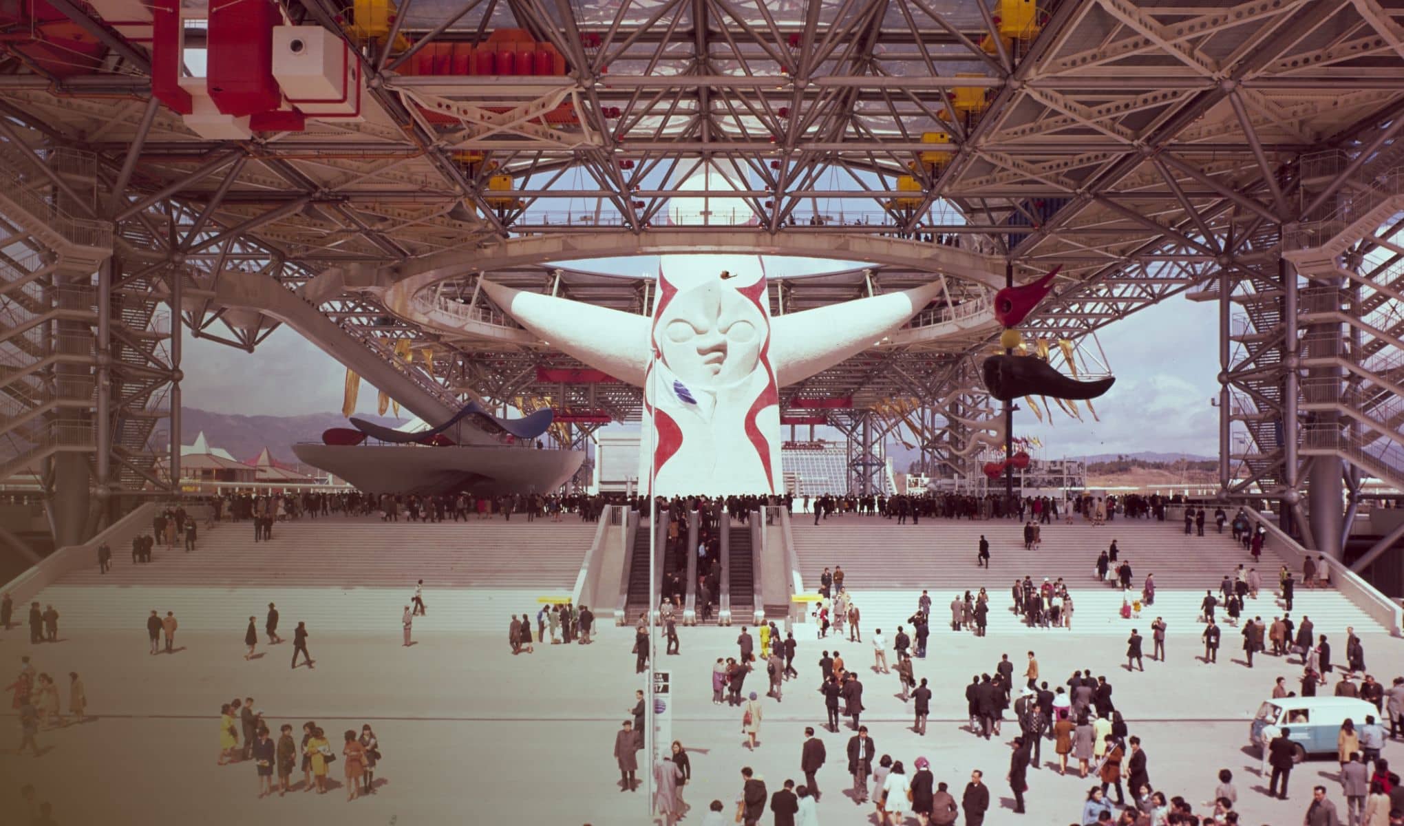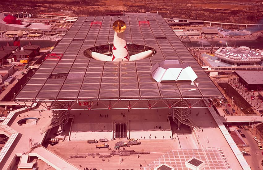 1970(昭和45)年3月から9月までの183日間にわたって大阪・千里丘陵で「人類の進歩と調和」をテーマに開催された日本万国博覧会(EXPO’70)は、77カ国の参加のもと6400万人を超える入場者が訪れたアジア初の国際博覧会でした。開催地の選定では、大阪以外にも兵庫、滋賀、千葉などの各県が手を上げましたが、市街地改造や、高速道路、地下鉄などのインフラ整備の充実を掲げ、地元を挙げて取り組んだ大阪での開催が決定しました。