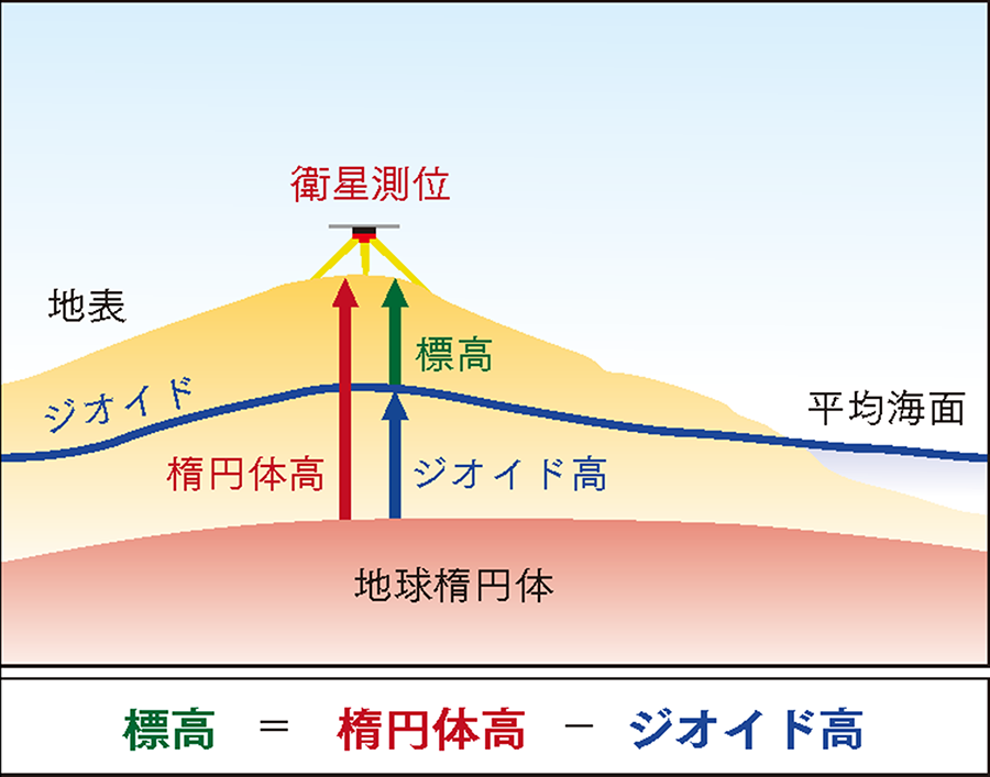 一般に水は高いところから低いところへ流れるが、平らな面であっても重力値が異なれば、重力の小さいほうから大きいほうへと流れる。そこで、重力を考慮した形で標高を得るため、地球の重力場の水準面に等しい平均海水面を仮想的に陸地に延長し、これを「ジオイド」と定義して標高の基準(標高0メートル)とした。ジオイドと、地表の間を重力の方向に沿って測った高さが「標高」である。