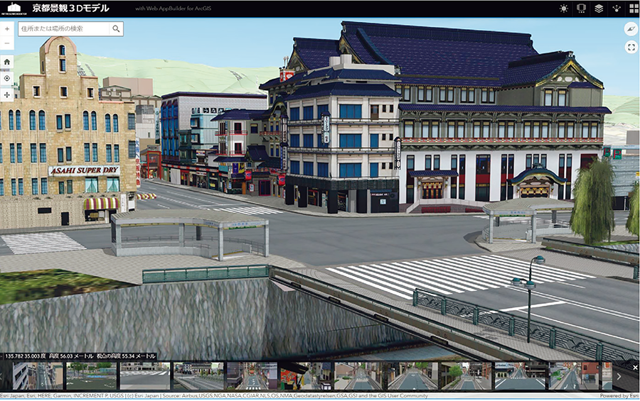 さらにVR表現も身近なものになりつつある。現在や過去の景観をVRで地図化した例として、立命館大学のバーチャル京都がある。これはレーザー測量で取得した建物形状データに写真画像を貼り付けて作成されたもので、京都市中心部のバーチャル空間をフライスルー、ウォークスルーが可能なVRとしてウェブで公開されている。こうした技術はメタバース空間にも応用されている。一方、地図と現実の景色を重ねて表現するのがARである。これには位置情報ゲームとして広まったPokémon GOがある。