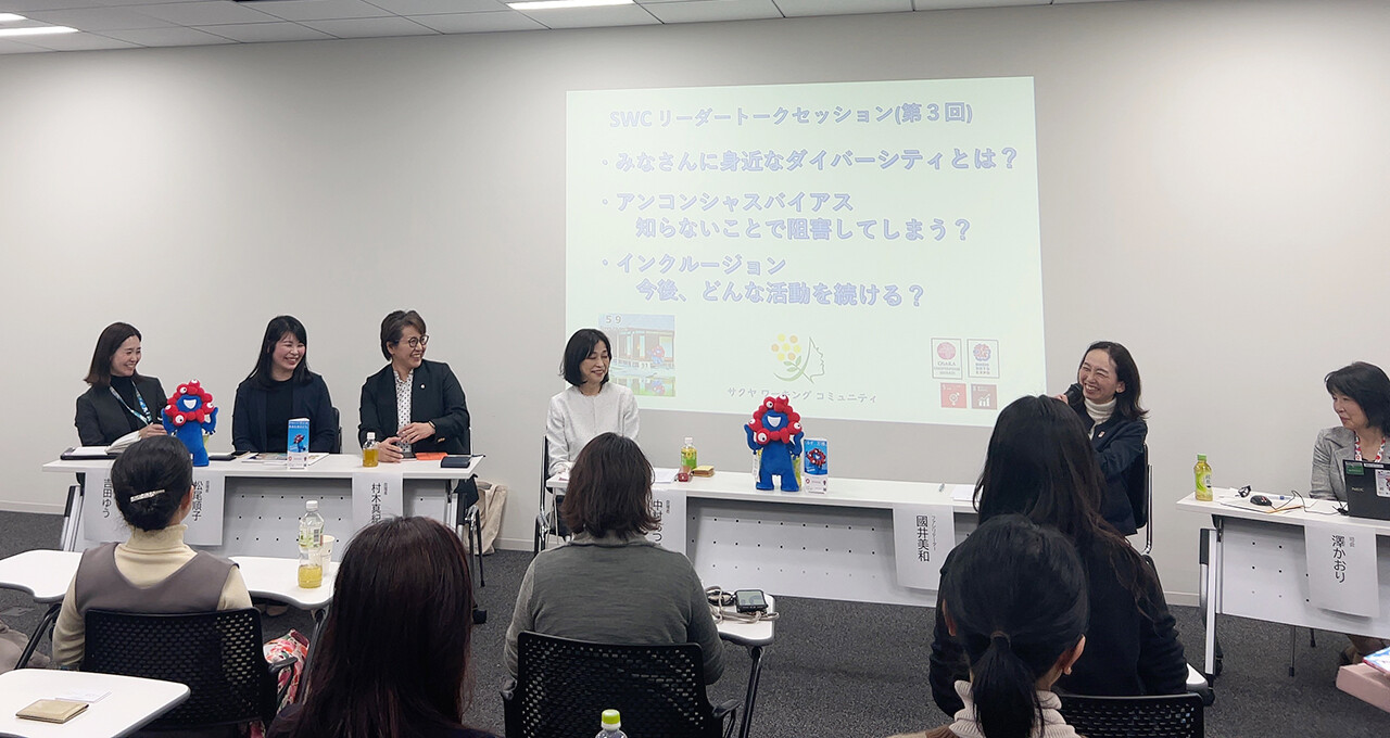 大阪・関⻄万博の開催まで60日を切った2025年2月13日、働く女性を支援する「サクヤ ワーキング コミュニティ」主催のもと、大林組大阪本店にて「ダイバーシティとは?」をテーマとしたトークセッションイベントが開催されました。サクヤ ワーキング コミュニティは、大林組をはじめ、住友電気工業や大阪大学などの有志による社会貢献活動グループで、大阪・関西万博開催に向けたさまざまな機運醸成イベントを開催しています。