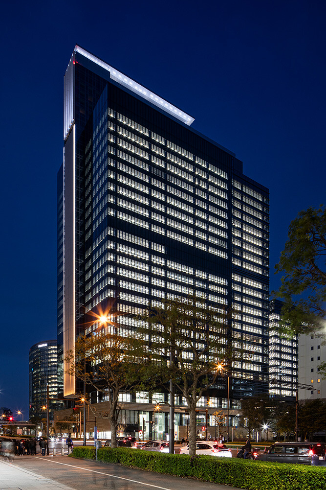 建物の外部照明は、地上付近は温かく柔らかな電球色、高層部になるに連れ、周囲のオフィスビルや空と調和する白色照明へとグラデーション状に変化しています。都市の景観へ配慮すると同時に、特徴的な照明デザインを実現しました。