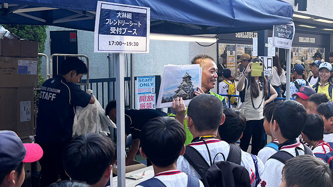 試合観戦前には、大林組が手がけた建設物や取り組みを紹介し、建設業への理解を深めてもらいました