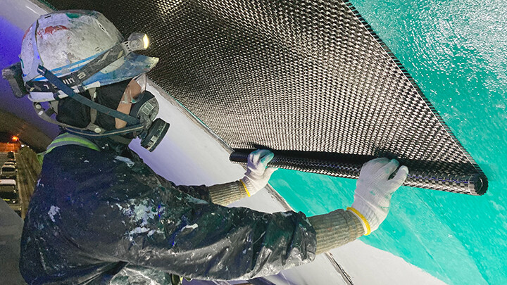 「ワンバインドクロス」は、高目付2方向炭素繊維シートを使用した覆工コンクリート補強工法です。シート1層で施工完了できるため、シート貼り付け作業が半減します。また、特殊な製法の炭素繊維シートにより、1層で従来の2層と同等の強度を確保できます。