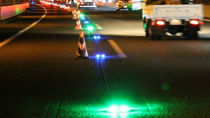 「ミチシリーズ」には、光の流れで車を誘導する「ミチテラ」、長時間点灯・繰り返し使用可能な発炎筒補完品「ミチレスQ」があります。これらは車線規制時の道しるべとして安全確保、注意喚起、渋滞緩和に寄与します。