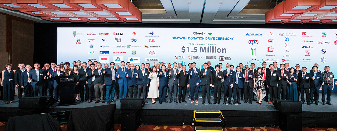 またESG活動の一環として、大林組とアジア諸国のパートナー企業は、シンガポール国立大学(NUS)や南洋理工大学(NTU)、シンガポール工科大学(SIT)、シンガポール工科デザイン大学(SUTD)における奨学金・補助金・プログラムなどの制度に対して150万シンガポールドル以上を寄付し、式典中に寄付セレモニーを執り行いました。