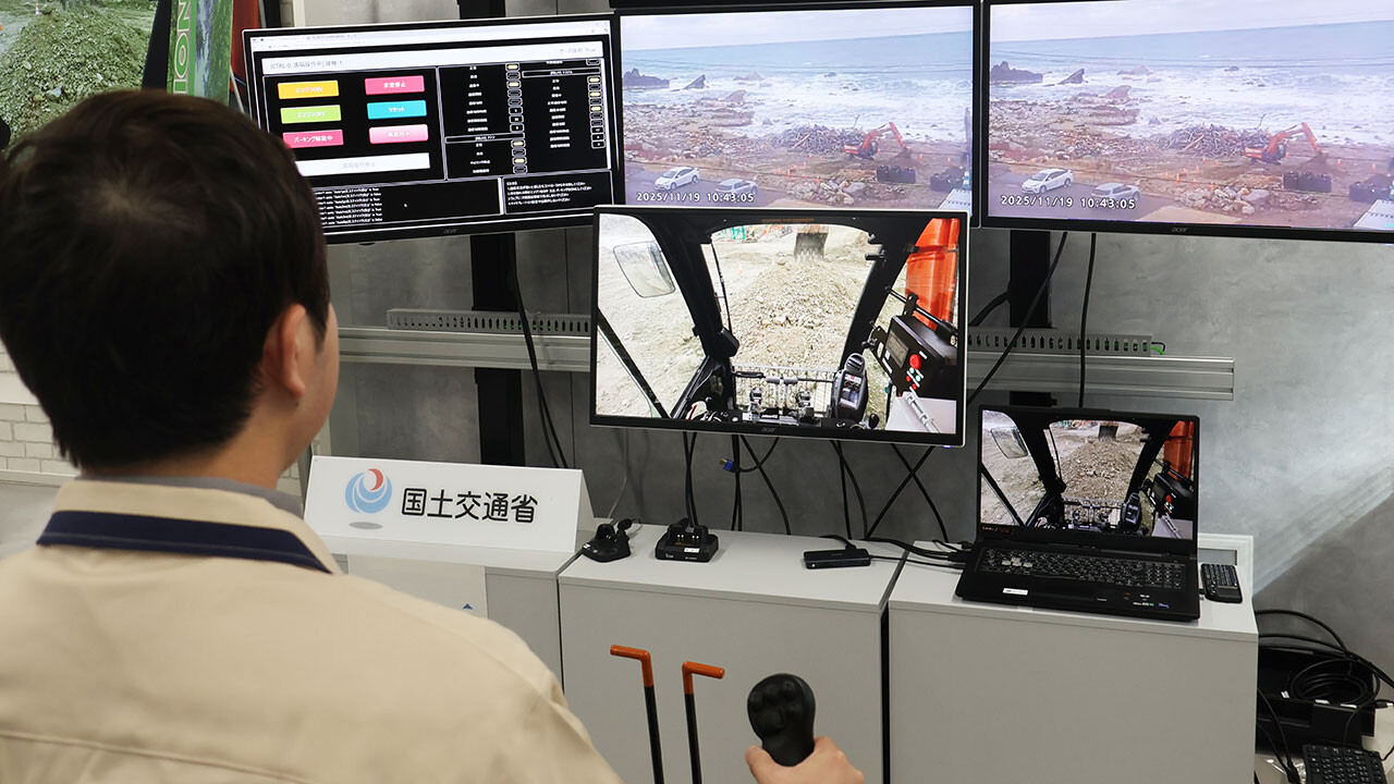大林組、国土交通省DXルームから能登半島災害復旧現場の建設機械を遠隔操縦