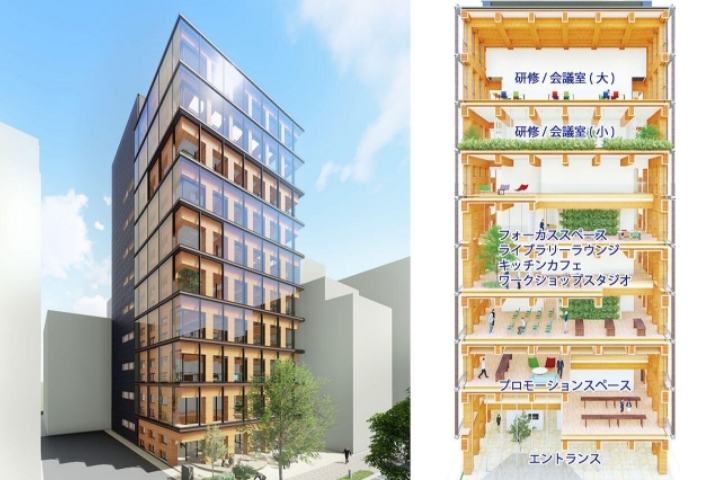 大林組は、自社の次世代型研修施設として、全ての地上構造部材(柱・梁・床・壁)を木材とした、日本初の高層純木造耐火建築物「Port Plus」を建設しました。純木造耐火建築物としては、国内最高となる高さ44m(11階建て)です。大林組は、これからも循環型資源である木材利用の拡大・促進による、持続可能な社会の実現を目指して、木造建築の普及に取り組んでいきます。