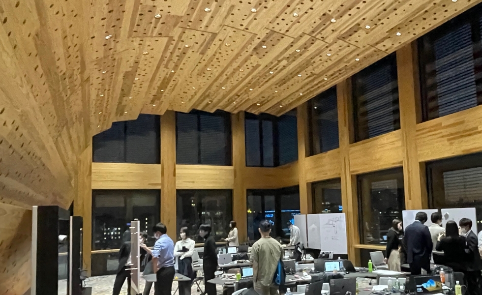 都市部の中高層耐火純木造建築モデルの先駆けとなることをめざし、日本初となる純木造11階建ての高層耐火建築物「Port Plus」を建設しました。支圧接合とGIR(Glued in Rod)工法を組み合わせた「十字形の剛接合仕口ユニット」など新技術の開発や、サーキュラーエコノミーも視野に入れた木質構造をめぐる社会システムのデザインにも取り組みました。