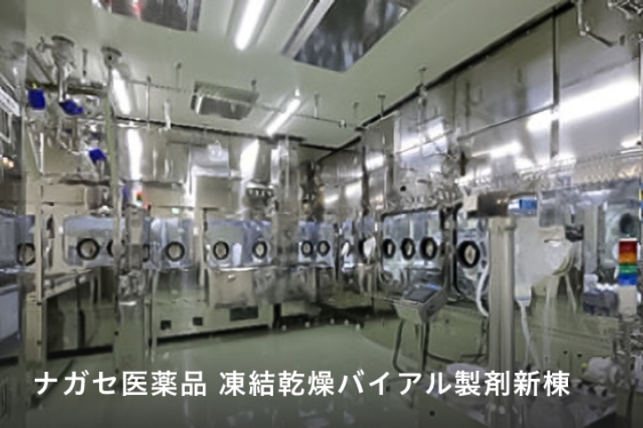 生産施設分野のうち医薬品工場では、注射剤の調製から充てんまでを行う製造施設で、建物から生産設備までを設計施工で対応しました。新棟と既存棟を接続する計画だったため、既存棟との人・ものの動線を配慮した室配置により使いやすさを追求するとともに、高度な「無菌かつ封じ込め」の技術とノウハウを展開しました。