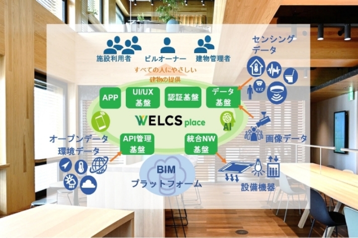 情報分野で開発したWELCS place Rはスマートビル向けの複数アプリを同一インターフェース上で一元的に管理できるスマートビルプラットフォームです。国内外の複数企業との協働により開発しました。