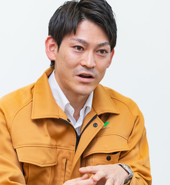 2008年入社。理工学部建築都市デザイン学科卒。主任として駅舎の躯体工事、外装工事、駅舎外のデッキ工事、駅前のイベント施設工事の安全・品質・原価・工程管理を担当。