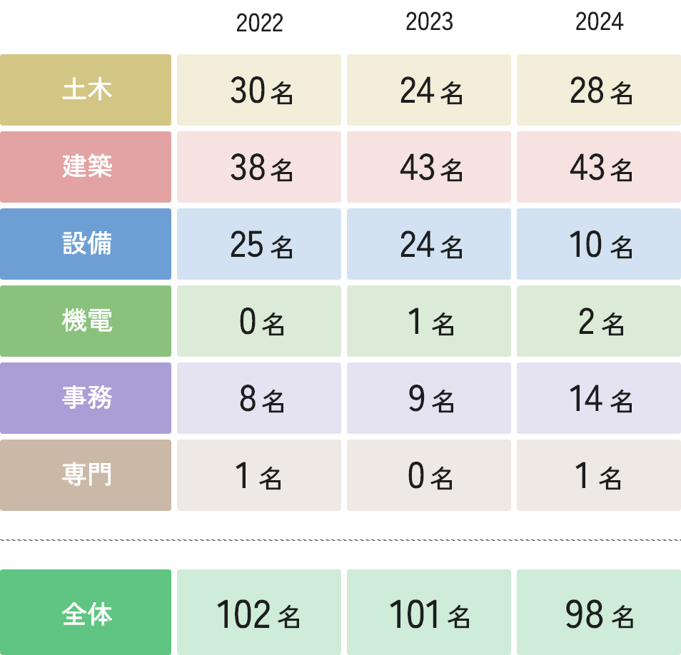 ※現場事務所勤務の主任、職員には、現場インセンティブ50,000円/月を加算しています。