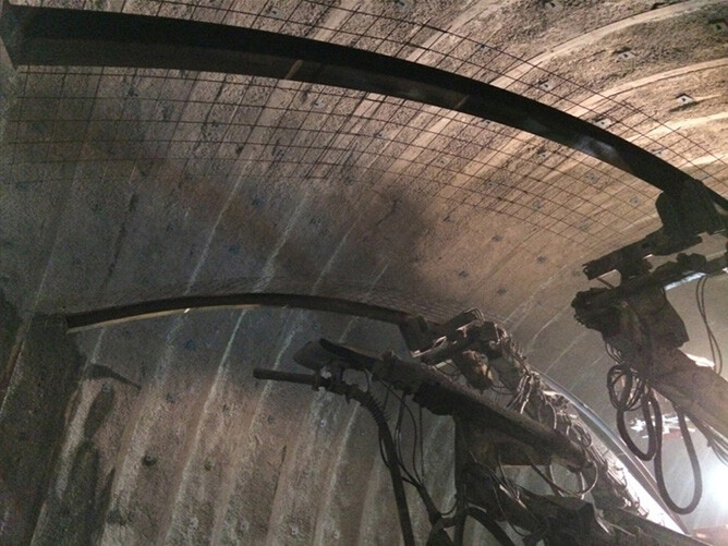 - 支保工をエレクターで把持したまま吹付け作業