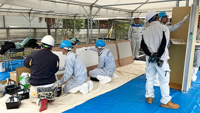 2022年度から、各工事の専門的な内容における技術力や安全・品質管理能力の向上を目的に工種別スキルアップ研修会を実施しています。これまで、左官工事、解体工事、躯体工事、内装工事に関する研修会を実施しています。