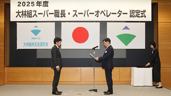 大林組では、建設業の魅力を高め、若年技能労働者の入職・定着率を向上させる施策の一環として、2011年からスーパー職長制度を導入しています。2016年には、40歳未満の技能労働者を対象としたジュニアクラスを新設するとともに、安全で効率的な施工に大きく寄与する優秀なクレーンオペレーターを認定する、スーパーオペレーター制度を導入しています。