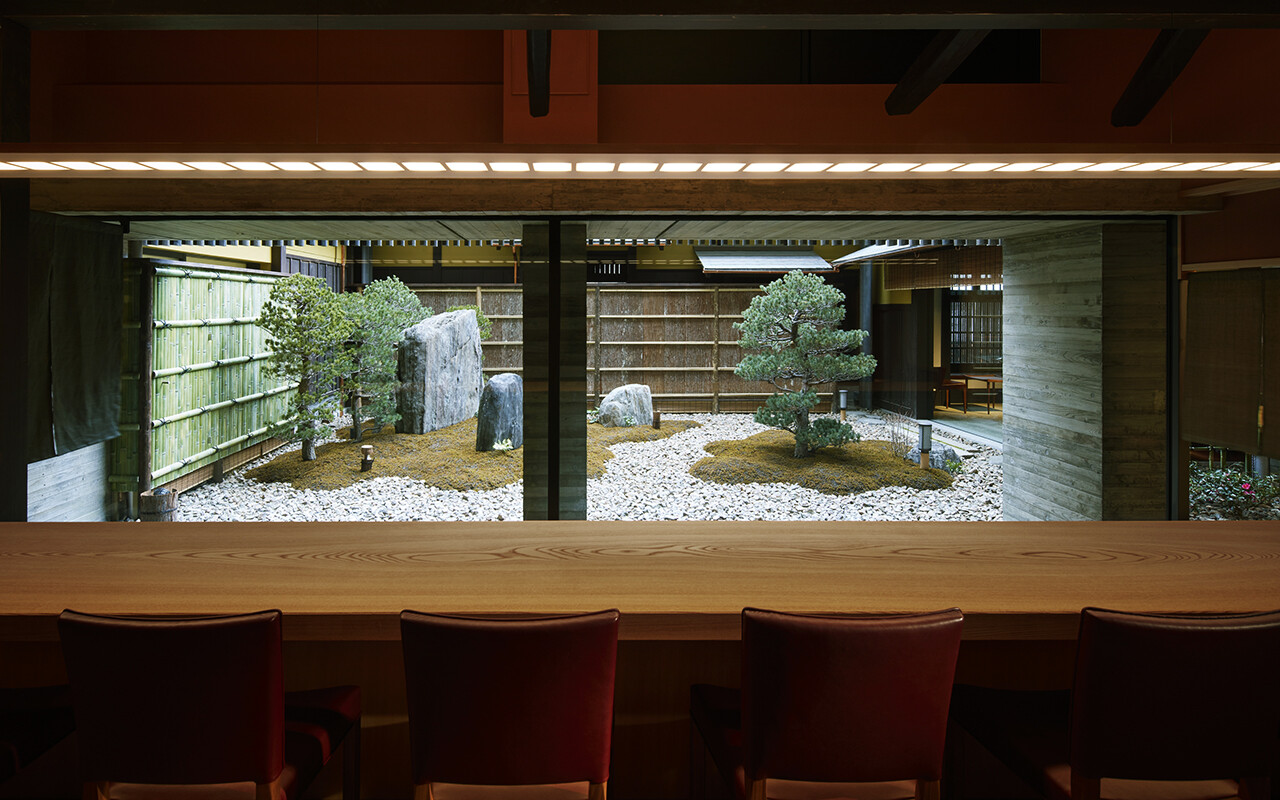 敷地の東西には、松籟(しょうらい:松に吹く風やその音)を表現した前庭と、竹林を通して光を室内に取り入れる奥庭をそれぞれ配置。空間に光や緑などの自然を取り入れ、京町家の生活空間に流れる美意識を継承しています。